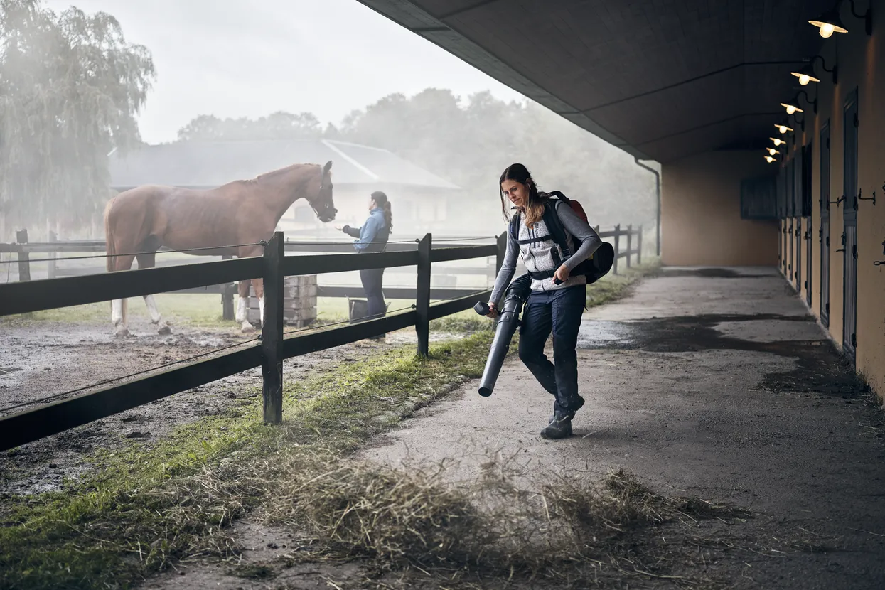 Akumulatorski pihalnik 340iBT: S tem dobro uravnoteženim akumulatorskim nahrbtnim pihalnikom lahko zunanje površine čistite z nizko ravnjo hrupa in tresljajev. Pihalnik Husqvarna 340iBT zagotavlja prepričljivo moč pihanja 17 N in ima intuitiven uporabniški vmesnik za učinkovito delo. Ker ima dve reži za akumulatorje s samodejnim preklopom, ki vam prihrani čas, lahko delate dlje in z manj prekinitvami. Nastavljivi ročaj, ki preprečuje vlečenje roke navzdol, zagotavlja enostavnejše upravljanje in večje udobje.