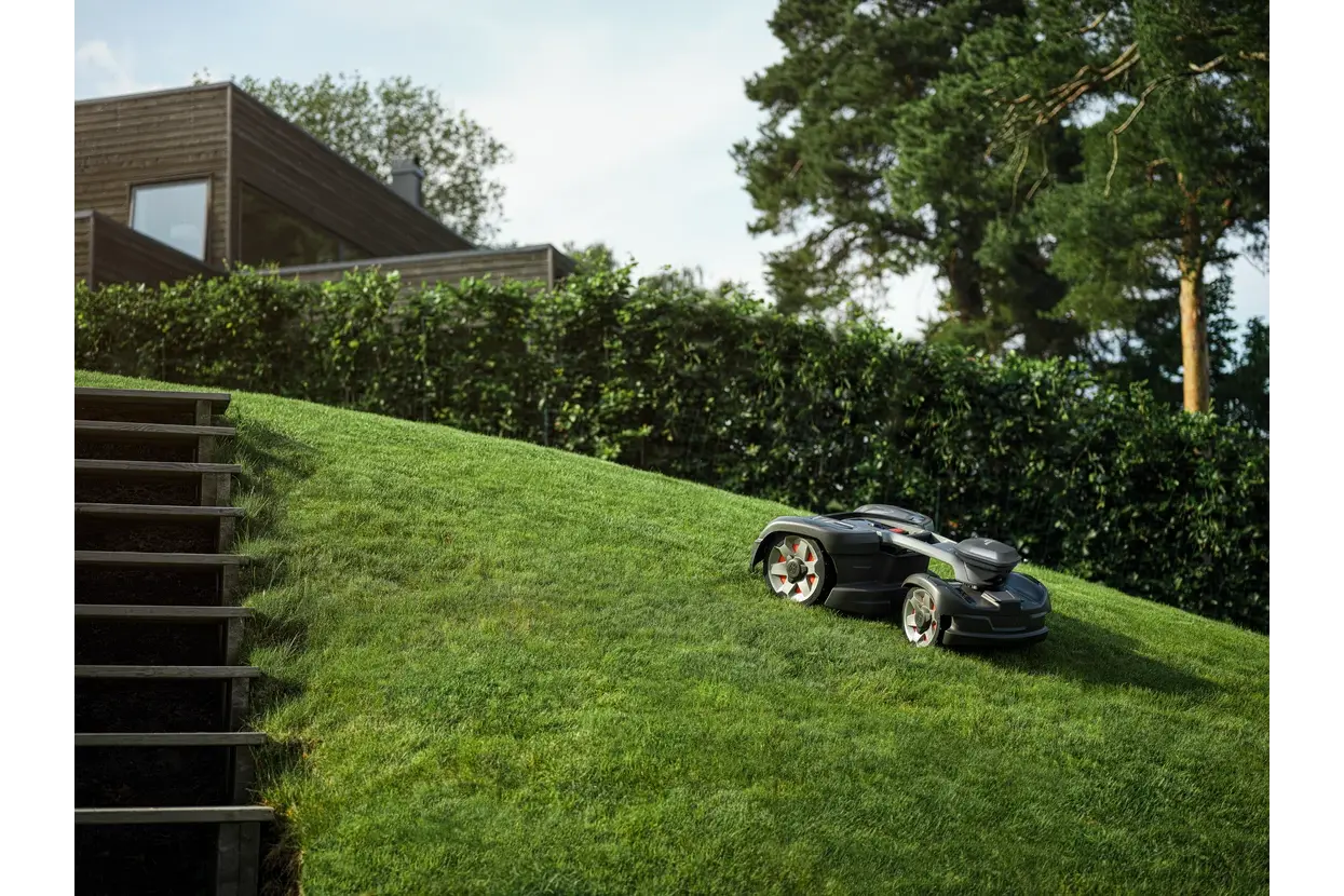 Brezžična robotska kosilnica s pogonom na vsa kolesa za strma pobočja z naklonom do 70 %.