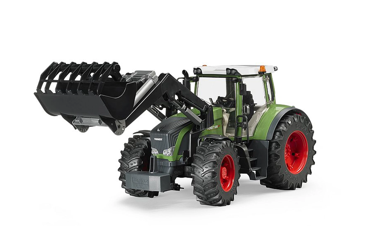 Otroška igrača traktor Fendt 936 Vario z nakladačem ima enake lastnosti kot drugi modeli BRUDER-jeve linije velikih traktorjev: