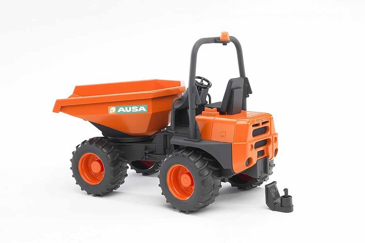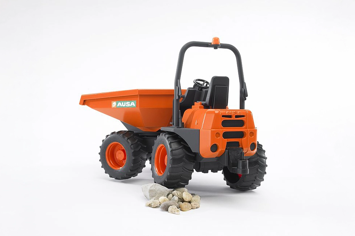 Bruder dopolnjuje svojo zelo uspešno paleto malih gradbenih vozil s tako imenovanim mini smetarskim vozilom. Mini nakladalci so običajno kompaktni stroji s sklepnim krmiljenjem, ki lahko po neravnem in težko dostopnem terenu prevažajo do 4 tone tovora. Zaradi štirikolesnega pogona in krmiljenja z zgibnim mehanizmom so zelo okretni in lahko imajo vsa štiri kolesa ves čas na tleh. Ta novi Bruder je izdelan po vzoru samokolnice D 350 AHG španskega podjetja AUSA. Tako kot njen resnični brat je tudi ta Bruder opremljen s sklepnim krmiljenjem in prevračalnim koritom, ki ga je mogoče obračati, ter ima tako kot njegov izvirnik odlične terenske zmogljivosti. Vozilo je opremljeno z zadnjo sklopko, ki omogoča, da ga je mogoče kombinirati s številnimi vlečnimi vozili iz palete izdelkov Bruder.