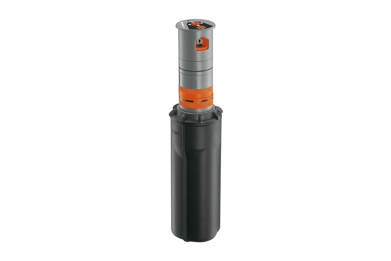 GARDENA ugrezni turbinski zalivalnik T 380 je del GARDENA Sprinkler sistema za namakanje srednje velikih površin do 380 m². Ugrezni turbinski zalivalnik T 380 se kombinira z ugreznim turbinskim zalivalnikom T 100 in T 200 (art. št. 8201 in 8203), ter zalivalnikom za pravokotne površine OS 140 (art. št. 8220). Domet je nastavljiv med 6 in 11 m. Področje namakanja je brezstopenjsko nastavljivo, na glavi zalivalnika med 25 in 360°, brez orodja. Namaka od majhnega področja, do polnega kroga. Zalivalnik s spominsko funkcijo se sam vrne v nastavljeno področje zalivanja, če ga po nesreči obrnemo v napačno smer. Zagotavlja namakanje le izbranega področja. Štiri šobe z različnimi pretoki, izbrane na podlagi velikosti posameznega namakalnega sektorja, za prilagodljivo namakanje. Šobe zagotavljajo enakomerno namakanje pri kombinaciji več zalivalnikov in različno nastavljenih sektorjih zalivanja. Filter za umazanijo omogoča neprekinjeno delovanje. Zanesljiv, pred peskom zaščiten turbinski pogon, zagotavlja dolgo življenjsko dobo. Izpustni ventil (art. št. 2760-20) na cevovodu, varuje sprinkler sistem pred zmrzaljo. Priključek 3/4″, z notranjim navojem.